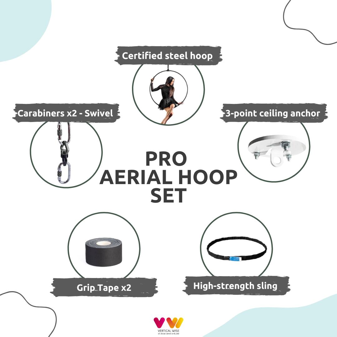 - 1 x Aerial Hoop – Πιστοποιημένο από την TUV NORD. Το μοναδικό aerial hoop με πιστοποίηση απο εξωτερικό φορέα και όχι μόνο από τον κατασκευαστή